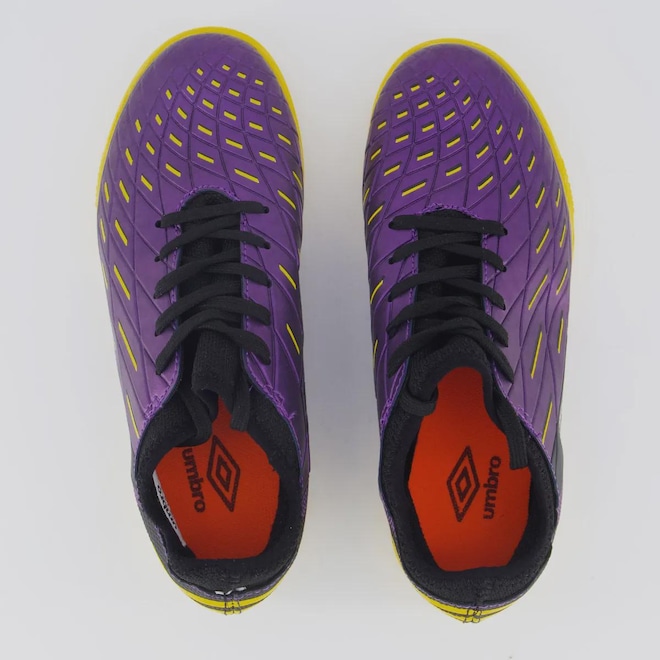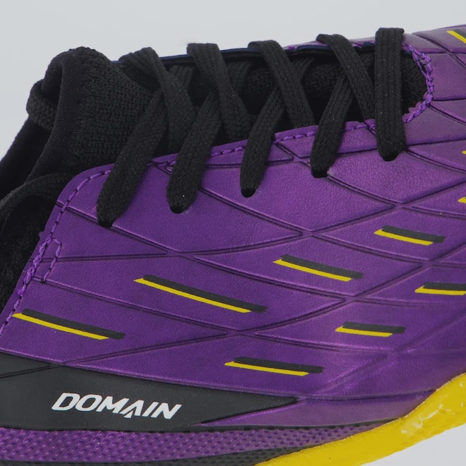 Tecnologias 360 Zone: Controle e aderência em todas as direções para movimentos ágeis. Non-Marking: Solado que não deixa marcas, ideal para quadras internas. Composição cabedal (parte superior): Produzido em material sintético Palmilha: Em EVA forrado e removível; facilita na higienização Solado: Borracha com solado antiderrapante, colado Forro: Revestimento em material têxtil acolchoado Cor predominante: Roxa Lingueta: Integrada Origem: Nacional Gênero: Unissex Ajuste: Cadarço Idade: Juvenil Peso aproximado: 440g par nº 35