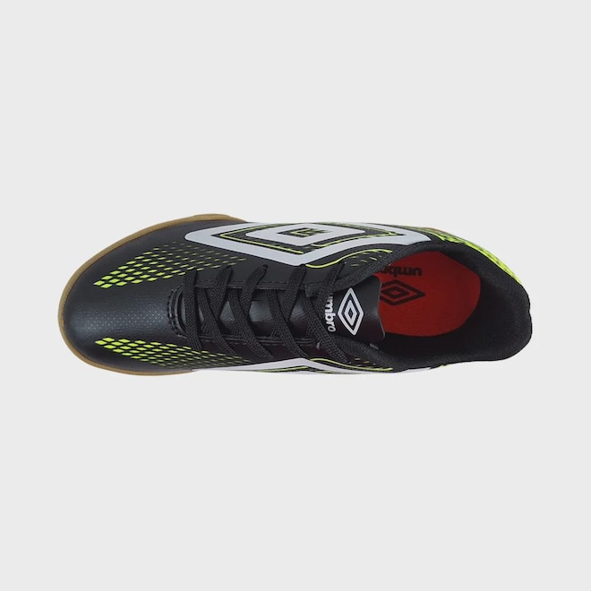 Característica Detalhe Função e Benefício Cabedal Sintético resistente Garante conforto e durabilidade, sendo leve e de fácil manutenção. Ventilação Forro em poliéster respirável Proporciona suavidade e ventilação, mantendo os pés frescos durante o jogo. Amortecimento Palmilha em EVA Oferece ótimo amortecimento e conforto essencial para o futsal. Solado PVC e TPU Garante excelente tração, flexibilidade e estabilidade, perfeito para mudanças de direção e jogadas rápidas. Uso Ideal Futsal Juvenil e Infantil. Desempenho e estabilidade Umbro para a quadra. Ficha Técnica e Medidas