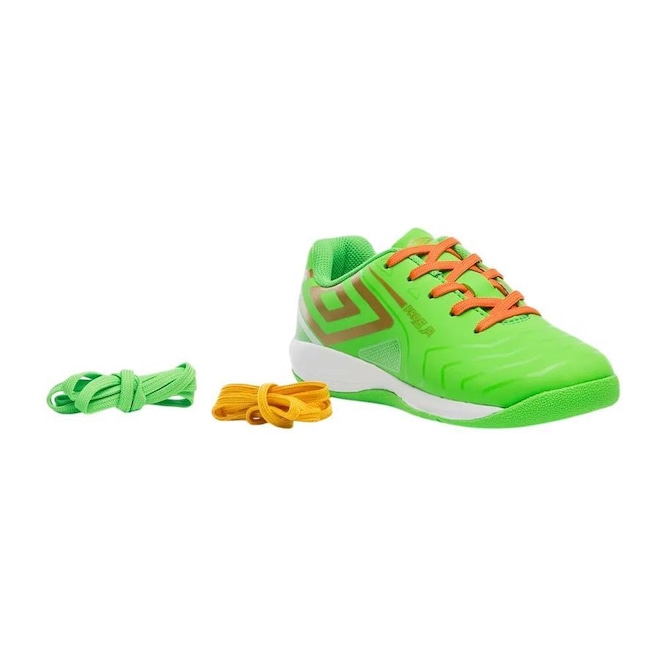 Nome: Chuteira Juvenil Umbro Futsal Pro 5 Jr Gênero: Unissex Indicado para: Futsal Detalhes: Acompanha adesivos inspirados em ícones da tradição do St. Patrick’s DayCabedal: Sintético Forro: Poliéster Entressola: Entressola super macia em EVA, proporcionando conforto de ponta a pontaLingueta: Fina e macia Palmilha: Fixa Solado: Sola de borracha, garantindo maior aderência ao solo e maior durabilidadeTerreno: Quadra Fechamento: Cadarços coloridos (verde, laranja e amarelo).Marca: Umbro Código do Artigo: U07FB00357-529