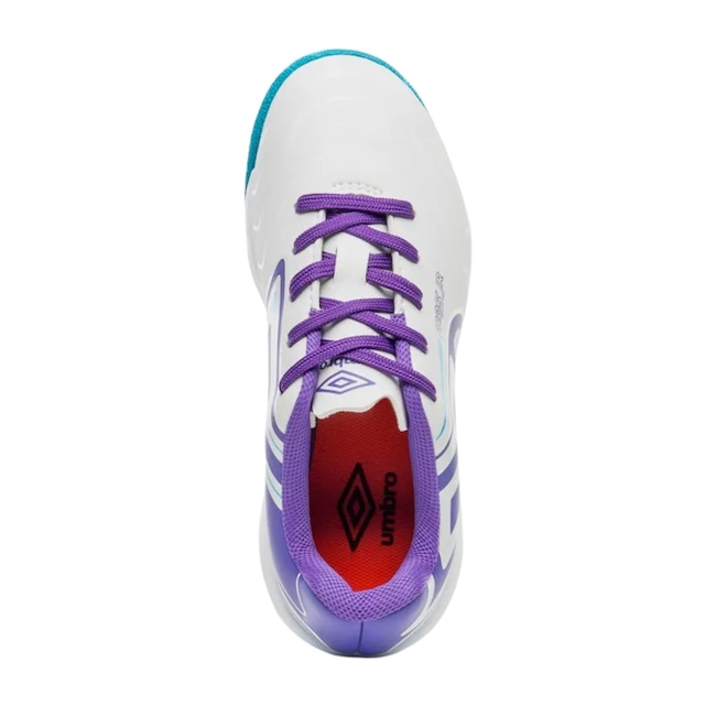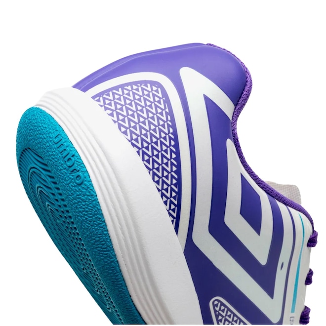 Cabedal em material sintético emborrachado com acabamento laminado. Conta com grafismo exclusivo e logo Umbro em destaque, aplicados em serigrafia.