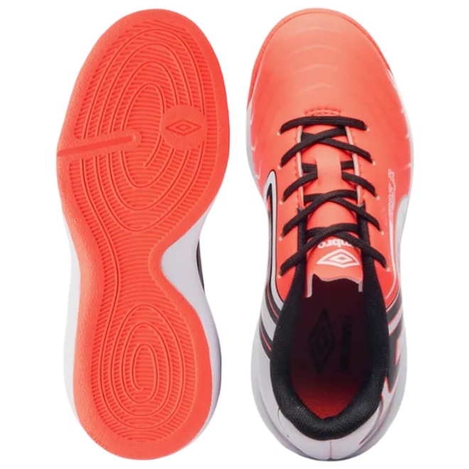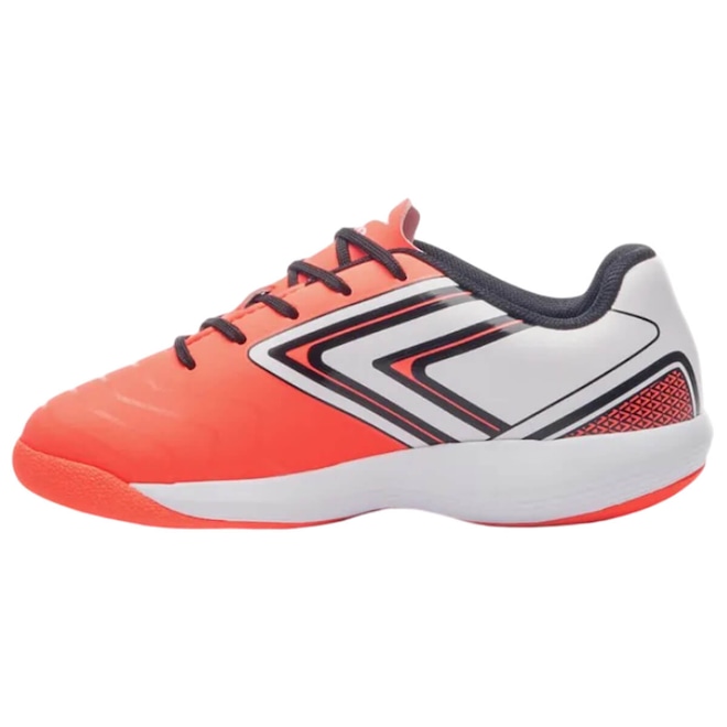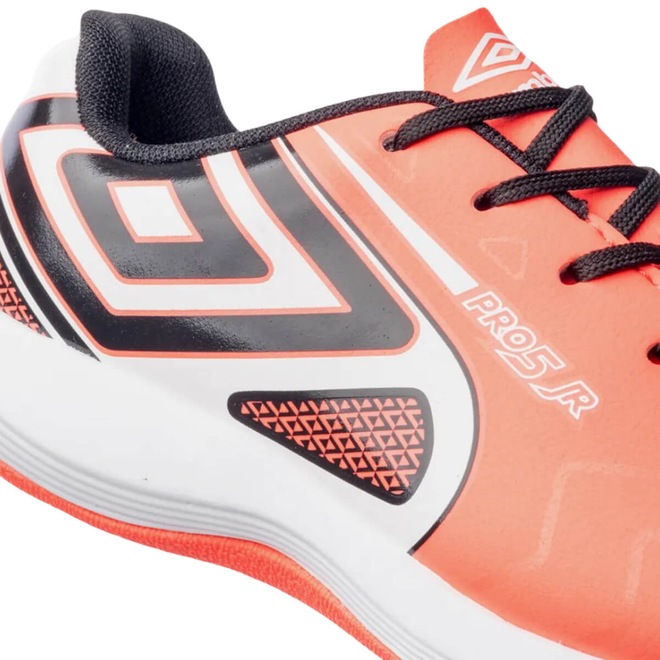 Seja o astro infantil das quadras com a Chuteira Futsal Umbro Pro 5 Jr. Ela é perfeita para as crianças e adolescentes que procuram conforto e qualidade para melhorar seu jogo. O cabedal é construído em material laminado emborrachado com grafismo personalizado e sistema de lingueta convencional. O solado de futsal possui entressola super macia em EVA de ponta a ponta com soleta em borracha, que proporciona maior durabilidade e aderência ao solo.