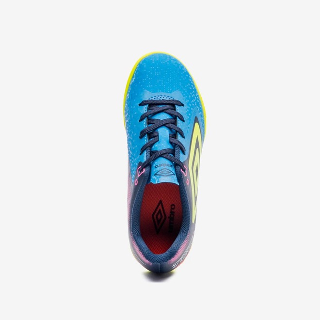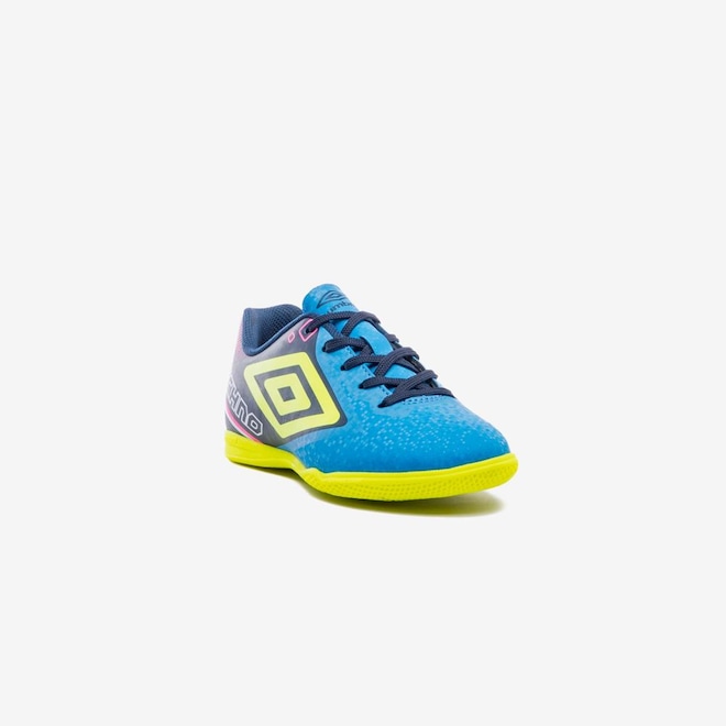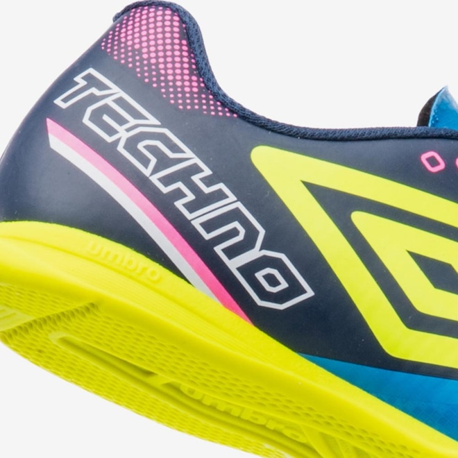 A Chuteira Futsal Umbro Techno II Jr foi desenvolvida para jogadores jovens que buscam um design moderno e ousado. O modelo destaca-se pelo efeito pixel em acabamentos fosco e brilhante, oferecendo um visual arrojado. O cabedal em material laminado com textura plana e contraste apresenta arte gráfica em serigrafia e cores contrastantes. Possui palmilha interna em EVA forrada e solado de futsal em borracha monocolor com tecnologia Hypergrip.