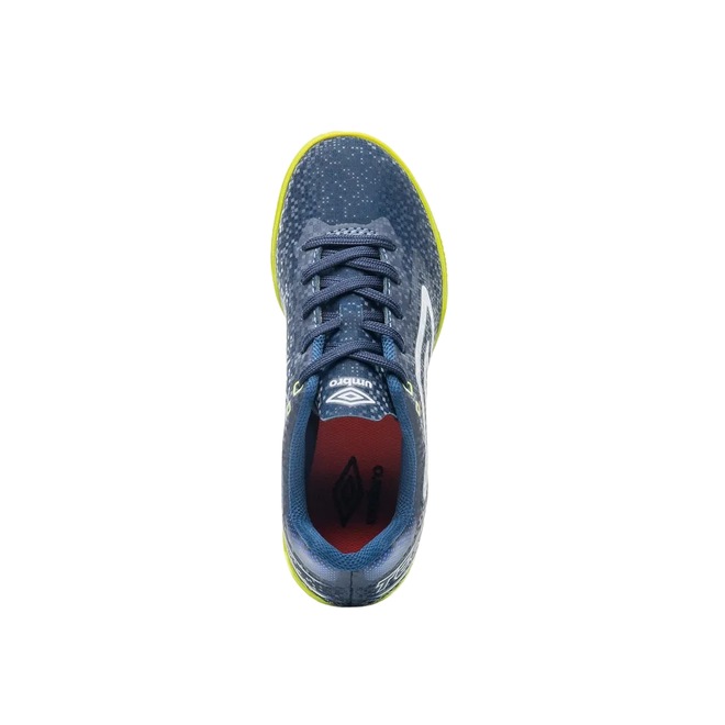 A Chuteira Futsal Umbro Techno II Jr foi desenvolvida para jogadores jovens que buscam um design moderno e ousado, com inspirações tecnológicas e visuais. O modelo se destaca pelo material que combina efeito pixel em acabamentos fosco e brilhante, oferecendo um visual arrojado. O cabedal é confeccionado em material laminado com textura plana e efeito de contraste, apresentando arte gráfica em serigrafia e elementos em cores contrastantes. O Diamante Umbro brilha na lateral externa, destacando o estilo inovador da chuteira. Possui palmilha interna em EVA forrada em tecido e solado de futebol indoor em borracha monocolor antiderrapante com tecnologia HYPERGRIP.