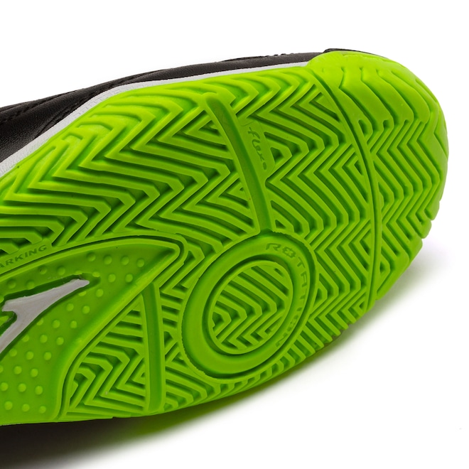 O sistema Rotation, com formas geométricas na planta do pé e calcanhar, proporciona estabilidade essencial em deslocamentos e mudanças rápidas de direção, ajudando a prevenir lesões e mantendo você no controle do jogo.