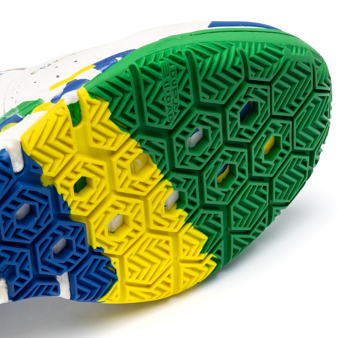 Além disso, a palmilha é removível, a lingueta é acolchoada e o forro conta com reforço acolchoado. Compre agora mesmo a sua chuteira de futsal Joma!