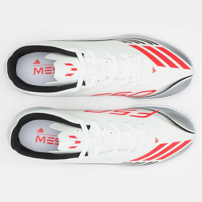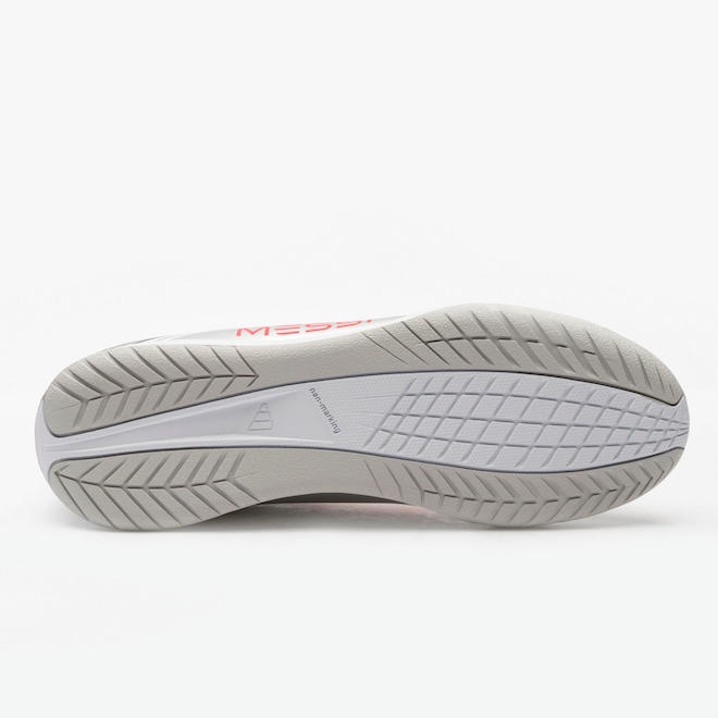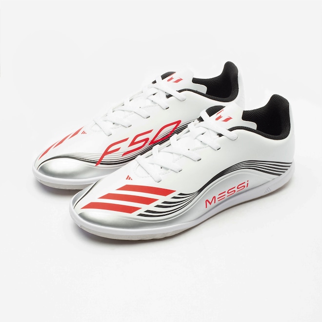 - Sobre o produto - Perfeita para jovens craques que se inspiram em Lionel Messi, essa chuteira futsal júnior da linha F50 oferece suporte, leveza e velocidade. - O cabedal sintético resistente com lingueta leve minimiza distrações para foco total em quadras indoor. - O solado de borracha que não marca o piso garante aderência sem comprometer a superfície. - Leve a magia do futebol para dentro da quadra. Jogue como o ídolo! - ref: 996504
