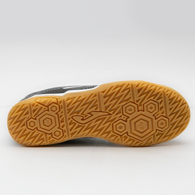 O cabedal sintético oferece toque preciso na bola, enquanto o solado em borracha garante aderência e tração nas quadras indoor. A estrutura interna proporciona bom ajuste e estabilidade, favorecendo a movimentação rápida e segura.