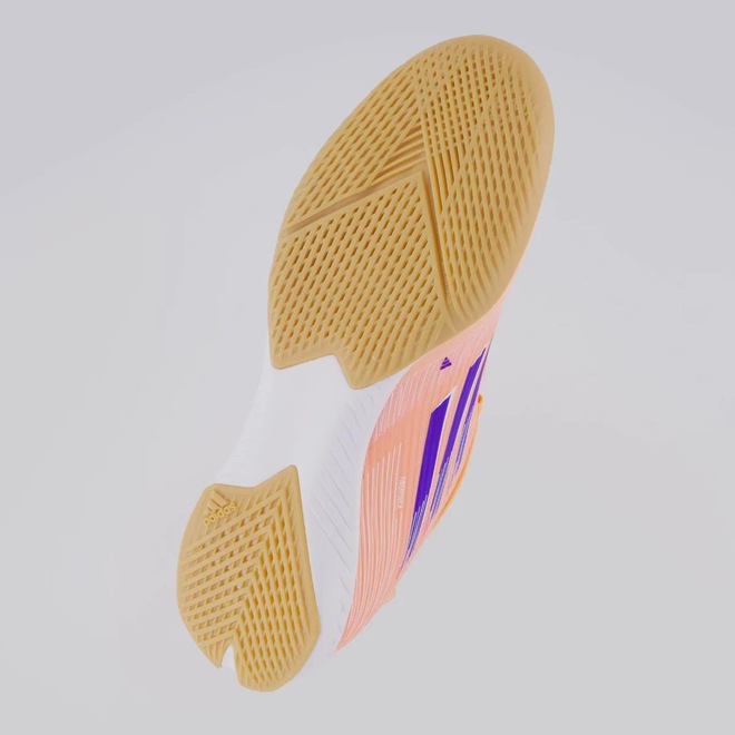 Tecnologia Non-Marking: Oferece tração para as jogadas nas quadras e não deixa marcas no solo. FiberTouch: Cabedal para suporte e amortecimento Composição cabedal (parte superior): Têxtil com partes em sintético Palmilha: Em EVA forrado e removível; facilita na higienização Solado: Borracha antiderrapante, colado Forro: Material têxtil acolchoado Entressola: EVA resistente Cor predominante: Laranja Lingueta: Fina e flexível Indicado para: Futsal Origem: Importada Gênero: Masculino Ajuste: Cadarço Peso aproximado: 500g o par n° 40