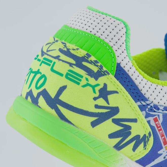 Tecnologias VTS: Cabedal em pele com malha respirável que garante ventilação Phylon: Entressola oferece amortecimento leve Reactive Ball: Uma espuma especial que absorve o impacto e o devolve como energia. Protection: Peça em TPU localizada no bico da chuteira que tem as funções de proteger a região e dar mais potência aos chutes. Rotation: Formas geométricas que proporcionam maior estabilidade em deslocamentos e mudanças de direção, evitando assim lesões e aumentando a precisão em cada passada. DURABILITY: Borracha que aumenta a resistência Composição Cabedal (parte superior): Couro Palmilha: EVA e removível, facilita no momento da higienização Solado: Borracha de alta resistência à abrasividade, colado Forro: Material têxtil com acolchoamento reforçado Lingueta: Macia e acolchoada Entressola: EVA resistente Cor predominante: Azul Marinho Indicado para: Futsal Gênero: Masculino Origem: Importada Ajuste: Cadarço Peso Aproximado: 540g o par n° 40 *Contém cadarço adicional