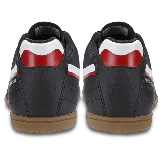 Solado é construído em borracha, garante excelente aderência e tração em superfícies lisas de futsal.