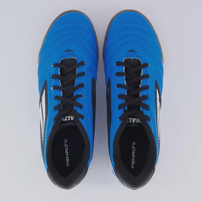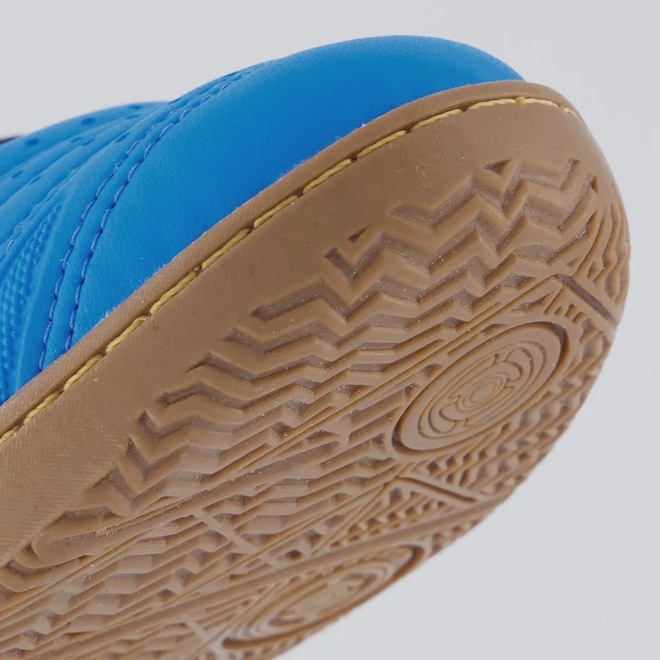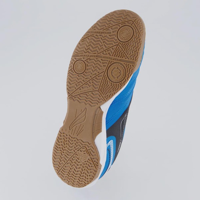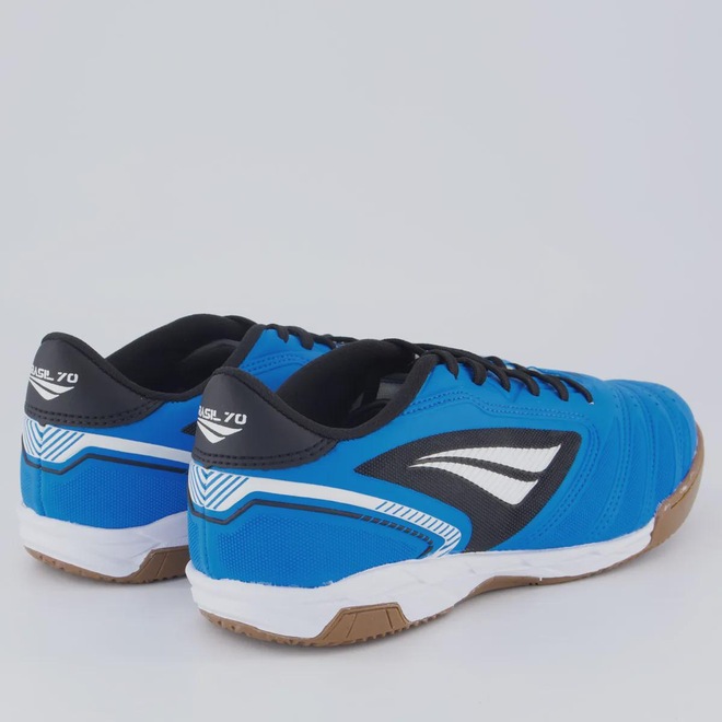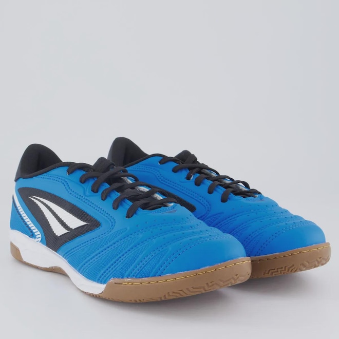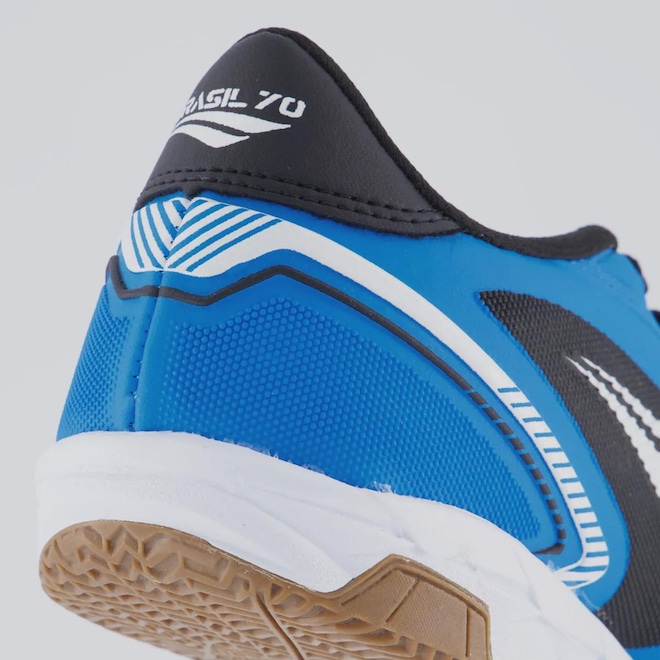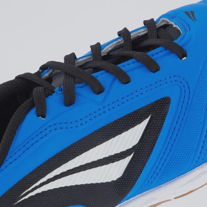Tecnologias Eva Plana: Maior amortecimento. Micropower: Leveza, durabilidade, controle de bola e facilidade de manutenção, proporcionando aos jogadores uma vantagem competitiva em esportes como futebol. Non-Marking: Tecnologia aplicada na composição dosolado para não marcar o chão das quadras. Hiperflex: Canaletas posicionadas estratégicamente para auxílio na flexão e movimentação dos pés. Rotate: Pontos de giro que auxiliamos movimentos rotacionais e evitam lesões. Composição cabedal (parte superior): Material sintético Forro: Revestimento em material têxtil acolchoado Palmilha: Eva Plana 3,5 MM Solado: Borracha antiderrapante, colado Cor predominante: Azul Indicada para: Futsal Lingueta: Integrada Entressola: EVA Origem: Nacional Ajuste: Cadarço Peso aproximado: 550g o par nº 40