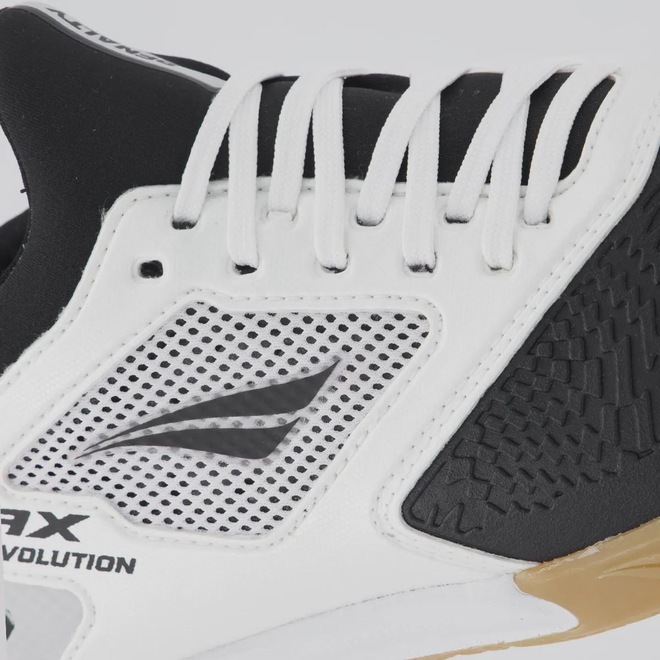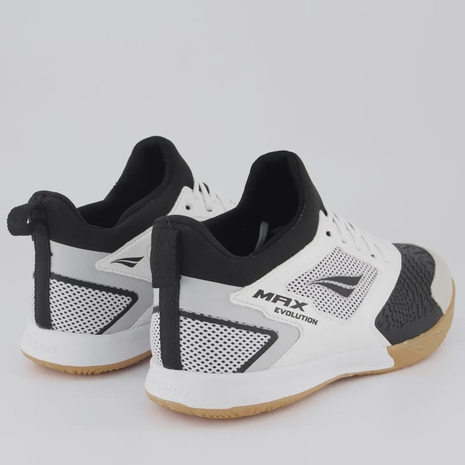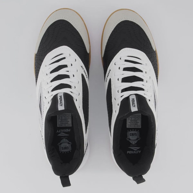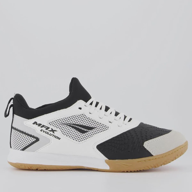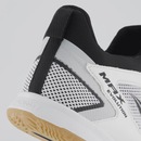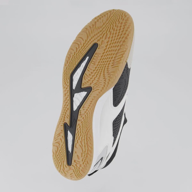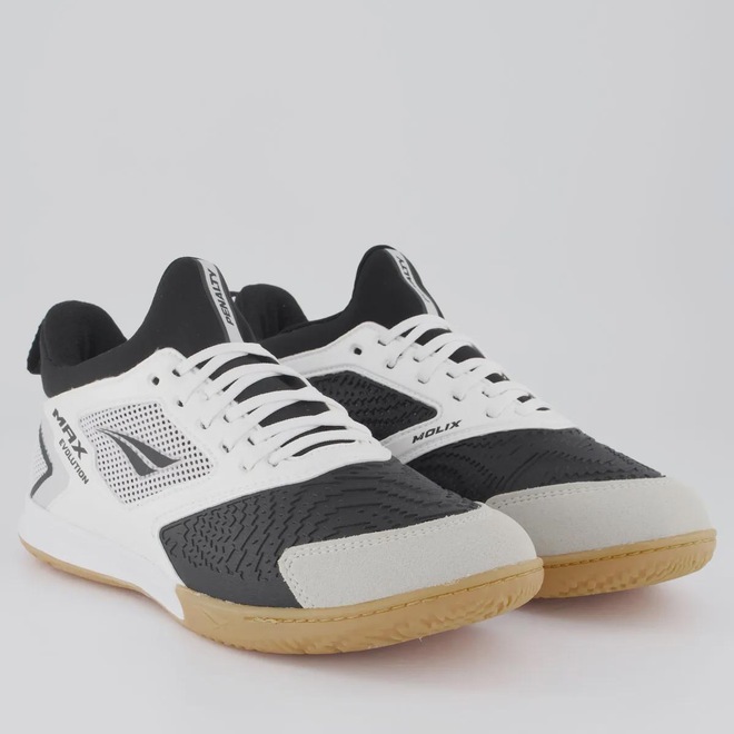 Tecnologias Neo Cushion: Tecnologia aplicada na entressola que a torna mais macia que as tradicionais de EVA, potencializando o amortecimento de impactos. Possui alta memória celular que proporciona maior resistência e rápida recuperação das características iniciais de amortecimento. Locker: "Bota" que permite ajuste mais anatômico e maior conforto. Rotate: Ponto de giro que auxilia a movimentação. Non-Marking: Uma borracha que não marca as quadras e proporciona excelente tração. Ultra Grip: Design que confere maior aderência para o solado, em todos os tipos de quadra. Molix 360: Exclusiva tecnologia que garante controle e domínio de bola durante o jogo. Composição cabedal (parte superior): Têxtil com sobreposição em sintético Palmilha: PU conformada e removível; facilita a higienização Solado: Emborrachado e antiderrapante Entressola: EVA macio e confortável Cor predominante: Branca Forro: Material têxtil Indicado para: Futsal Lingueta: Integrada Origem: Nacional Ajuste: Cadarço Peso aproximado: 680g o par nº 40