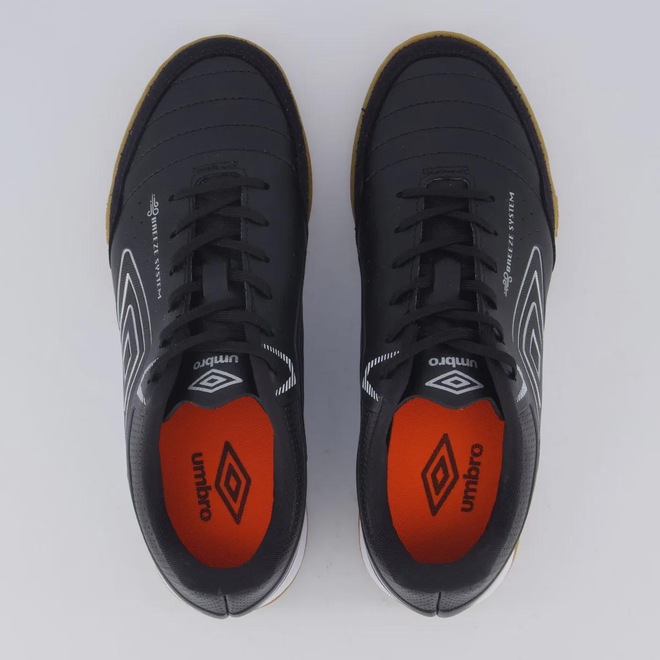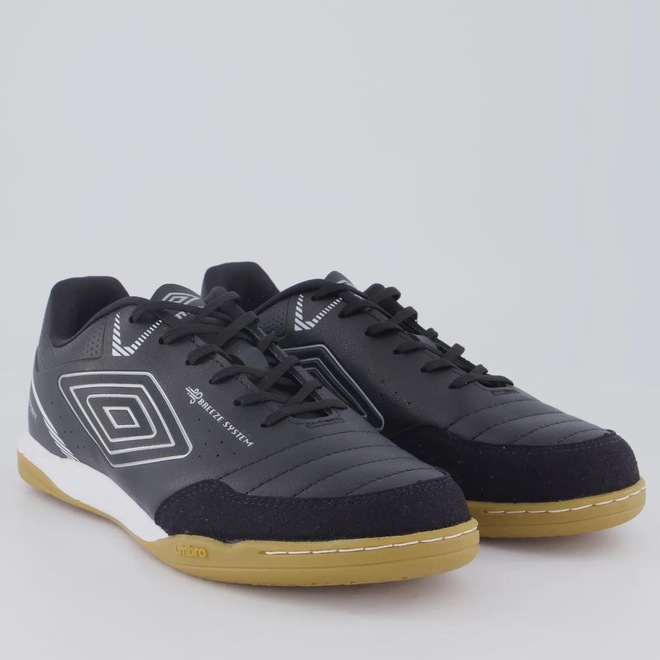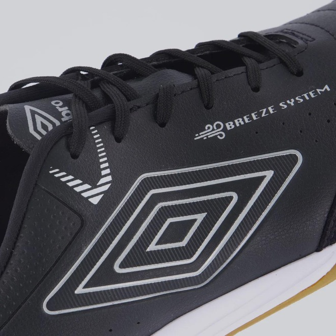TecnologiasBreeze System: Tecnologia que melhora a ventilação do calçado, promovendo maior circulação de ar para manter os pés frescos e secos durante o uso.360 Zone: Sistema que oferece suporte e estabilidade em toda a volta do pé, garantindo melhor ajuste, controle e proteção em movimentos durante a prática esportiva.Non-Marking: Uma borracha que não marca a superfície e proporciona excelente tração.Composição cabedal (parte superior): Material sintéticoPalmilha: Em EVA e removível; facilita na higienizaçãoForro: Revestimento em material têxtil acolchoadoSolado: Borracha antiderrapante, coladoCor predominante: PretoLingueta: Fina e flexívelIndicado para: FutsalOrigem: NacionalAjuste: CadarçoPeso aproximado: 610g par nº 40
