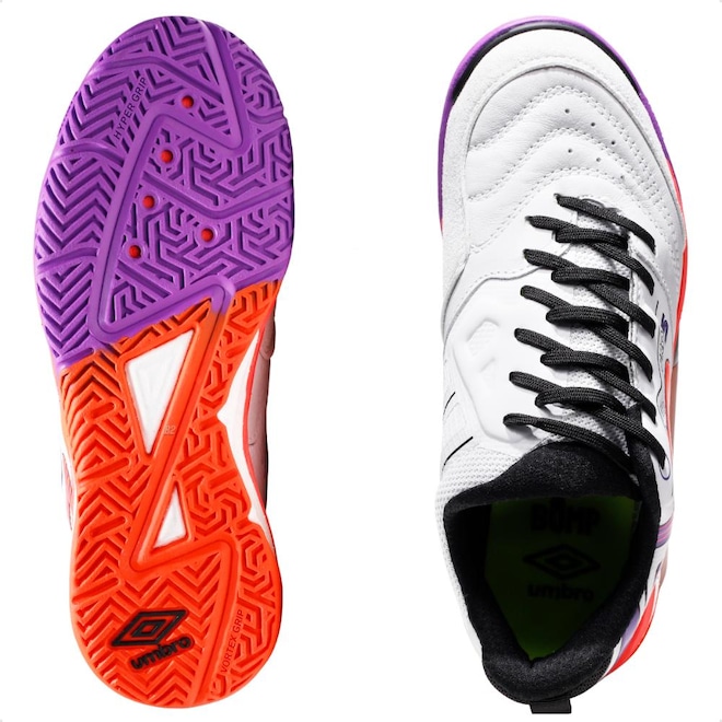Domine as quadras com a Umbro Pro 5 Stable, desenvolvida para jogadores que buscam equilíbrio, controle e desempenho máximo no futsal.