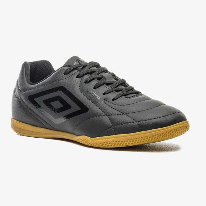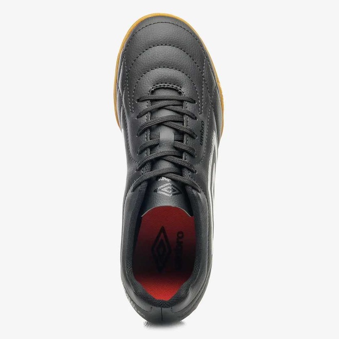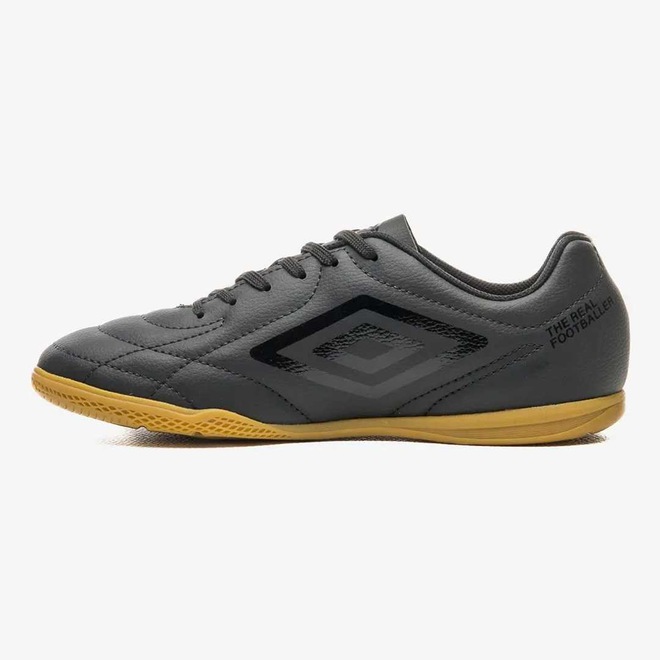 A Chuteira Futsal Umbro Class Footballer é indicada para jogadores de nível intermediário que buscam qualidade e conforto. O modelo apresenta cabedal confeccionado em material laminado com textura de couro relax, apresenta artes gráficas em serigrafia e costuras programadas em um desenho clássico. Possui palmilha interna em EVA forrada em tecido e solado de futebol indoor em borracha monocolor antiderrapante com tecnologia Hypergrip.