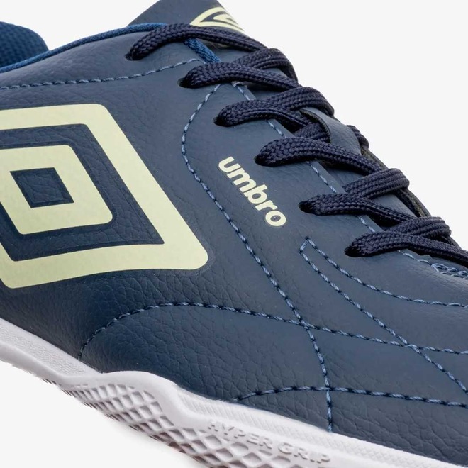 A Chuteira Futsal Umbro Class Footballer é indicada para jogadores de nível intermediário que buscam qualidade e conforto. O modelo apresenta cabedal confeccionado em material laminado com textura de couro relax, apresenta artes gráficas em serigrafia e costuras programadas em um desenho clássico. Possui palmilha interna em EVA forrada em tecido e solado de futebol indoor em borracha monocolor antiderrapante com tecnologia Hypergrip.