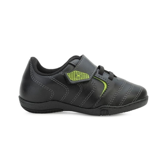 Nome: Chuteira Futsal Molekinho MK24-28083. Gênero: Menino. Indicado Para: Dia a dia. Estilo da Peça: Casual. Material Externo: Alternativo com detalhes em costuras. Material Interno: Poliéster acolchoado.Ajuste: Cadarço elástico e tira aderente. Palmilha: Forrada, macia e removível. Solado: Borracha com ranhuras específicos para Futsal. Peso do Produto: 571 g (o peso varia de acordo com a numeração). Garantia do Fabricante: Contra defeito de fabricação. Origem: Nacional. Código Produto: 03230603. Marca: Molekinho.ref: M134R4