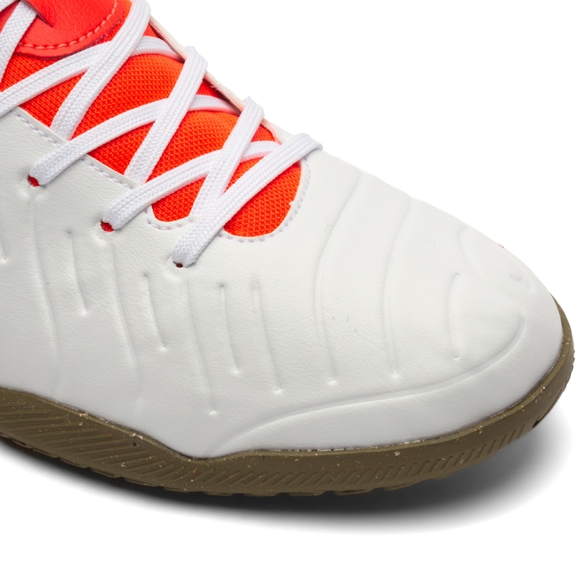 A parte superior da chuteira é construída com materiais de alta qualidade, proporcionando um toque preciso na bola e um controle excepcional durante as jogadas.