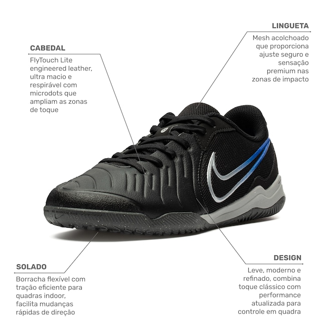 A Chuteira Futsal Nike Legend 10 Academy Adulto combina durabilidade e conforto para os craques das quadras.