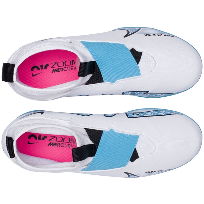 Zoom Superfly 9 Júnior da Nike tem cabedal (parte superior do calçado) em material sintético, entressola em EVA e solado emborrachado.