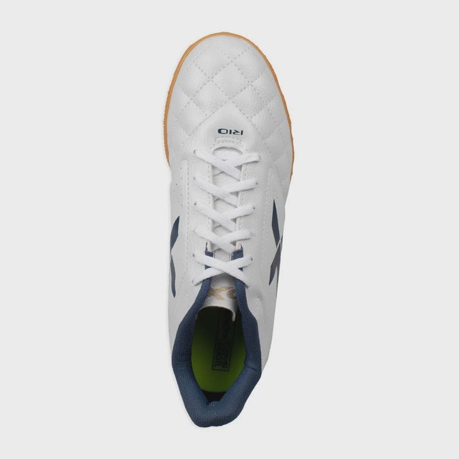 Se você busca qualidade em uma chuteira de futsal, a OXN oferece a Chuteira Rio Futsal. Confeccionada em material sintético o seu cabedal é resistente e protege os seus pés. O seu forro é em material têxtil e acolchoado, para conforto durante as partidas e também evitar lesões. Seu solado é fabricado em PVC, garante resistência e firmeza ao pisar na quadra, evitando quedas. Por fim, o seu design é predominantemente branco e com detalhes em azul marinho. Garanta já a sua e dê show com a bola nos pés!