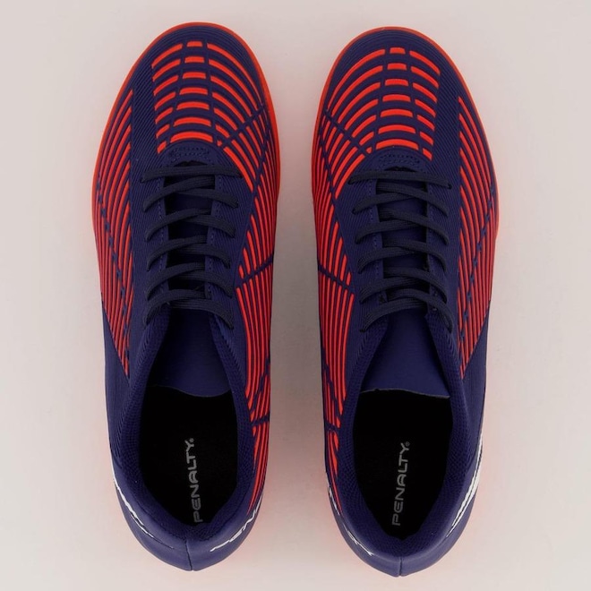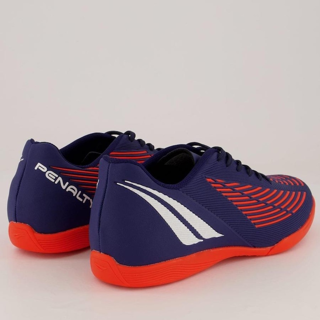 A chuteira futsal Penalty conta com forro têxtil e reforço acolchoado no calcanhar que garante maior proteção.