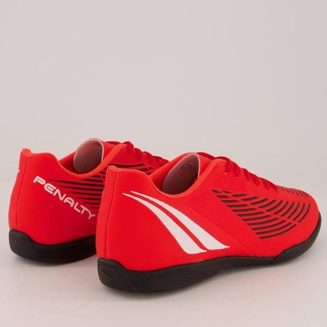 A chuteira futsal Penalty conta com forro têxtil e reforço acolchoado no calcanhar que garante maior proteção.