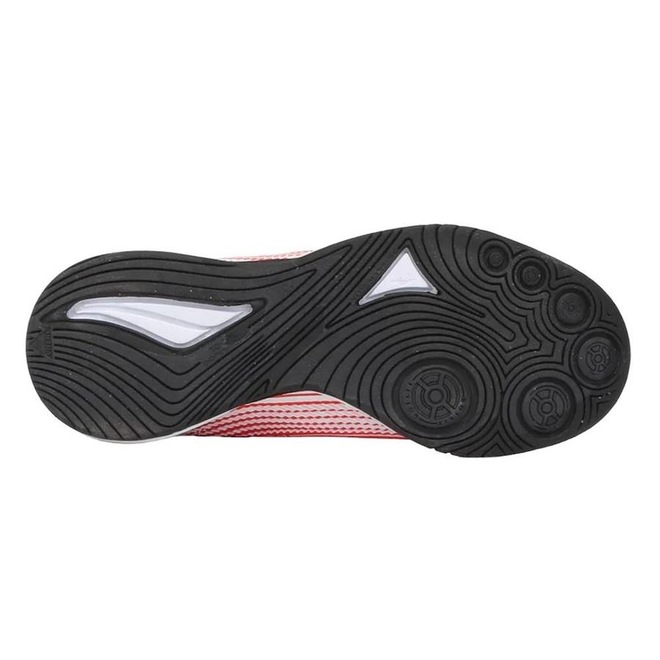 O solado emborrachado com pontos de giro, conta com a tecnologia Non Marking, com total aderência e tração dentro das quadras sem deixar marcas nas quadras.