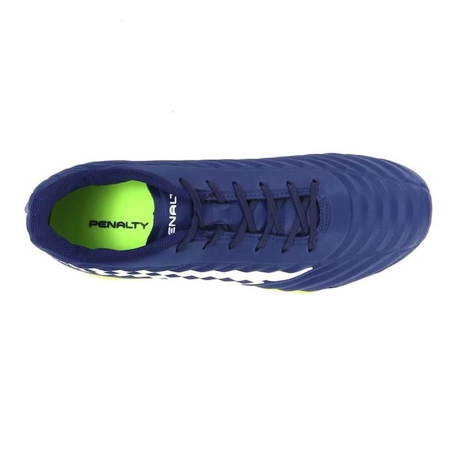 De cor marinho com detalhes em amarelo, exibe a logo da Penalty na lateral em branco.