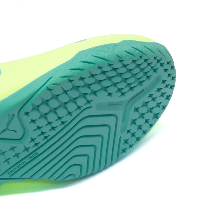 A chuteira futsal Puma conta com forro têxtil e reforço acolchoado no calcanhar garantindo maior proteção.