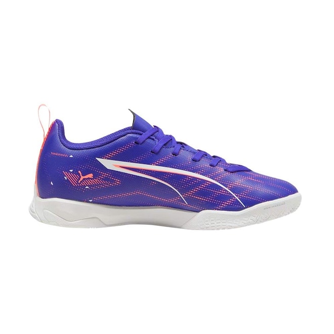 Qual é a velocidade de uma ULTRA 5 PLAY? Apertem o cinto. Esta chuteira apresenta uma estrutura de suporte leve que adiciona estabilidade ao cabedal, enquanto a sola interna de borracha de baixo perfil não deixa marcas e a torna adequada para uso interno. Onde quer que você jogue, jogue a todo vapor.