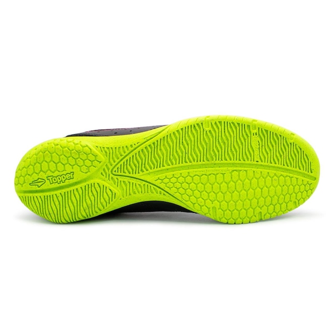 A Chuteira Futsal Topper Capita III é a sua companheira perfeita nos dias de jogo! O cabedal é feito em material resistente e durável na área de chute, com sistema t-adapt de amarração diferenciada que promove estabilidade e ajuste ideal. A parte traseira é feita em tecido com tramas no calcanhar, ideal para ventilação e sustentação. Conta ainda com costuras aparentes para melhor controle da bola, enquanto a palmilha em EVA traz amortecimento e conforto. O solado em borracha é antiderrapante com tecnologia flexzone - canaletas em baixo relevo que auxiliam na flexão do pé e transição da pisada - além da easymove - área de giro para potencializar movimentos rotacionais durante o jogo, tornando-o um calçado ideal para jogos em quadras indoor. Domine o jogo com confiança com a Topper. Adquira já a sua! Nome: Chuteira Futsal Topper Capita III Gênero: Unissex Indicado para: Futsal, Quadras Indoor Cabedal: Material Resistente e Tecido respirável Solado: Borracha antiderrapante Tecnologias: t-adapt - sistema de amarração que promove maior sustentação/t-control - sistema de costuras e espuma para melhor controle de bola/flexzone - canais em baixo relevo para maior flexibilidade na pisada/easymove - ponto de giro para movimentos rotacionais Garantia: Produto original contra defeito de fabricação em até 90 dias após o recebimento da mercadoria Origem: Nacional Marca: Topperref: M15GPJ