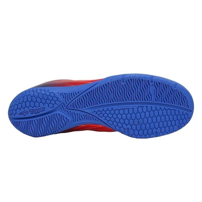 O solado da Chuteira é feito em borracha de alta aderência, que garante excelente tração e aderência na quadra, dispõe também da tecnologia Flex-zone, que concede flexibilidade aos movimentos, e Non-Marking, que não deixa marcas no solo.