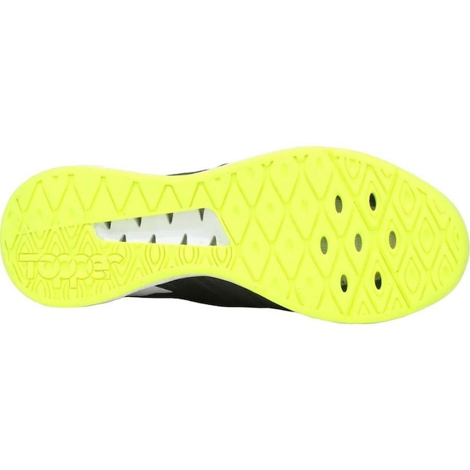 Solado T-Flow com entradas de ar para a troca de calor com o meio, promovendo respirabilidade e a redução da temperatura interna na hora da partida.