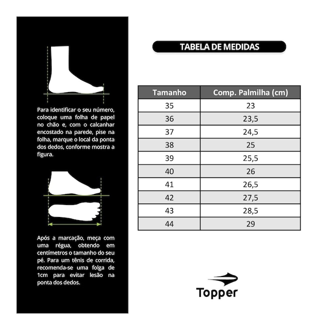 Brilhe em quadra nos jogos de futsal com a Chuteira Topper Maestro Club V! Com um design clássico e discreto, seu cabedal é confeccionado em material resistente e flexível. Conta com reforço em camurça na biqueira e um calcanhar acolchoado com pequenos furos para melhor respirabilidade. O logo Topper vem costurado nas laterais, com texturas que aumentam o controle de bola. A palmilha consiste em montagem injetada e EVA conformado, para maior estabilidade. O solado traz borracha+EVA, com t-cushion - alta absorção de impacto para mais conforto e amortecimento. É antiderrapante com os sistemas flexzone - canaletas em baixo relevo que auxiliam na flexão do pé e transição da pisada - e easymove - área de giro para potencializar movimentos rotacionais durante o jogo, tornando-o um calçado ideal para jogos em quadras indoor. Domine o jogo com confiança e alta performance com a Topper. Nome: Chuteira Futsal Topper Maestro Club V Gênero: Unissex Indicado para: Futsal, Quadras Indoor Cabedal: Material Resistente e Camurça Solado: Borracha antiderrapante e EVA Tecnologias: t-adapt - sistema de amarração que promove maior sustentação/t-control - sistema de costuras e espuma para melhor controle de bola/flexzone - canais em baixo relevo para maior flexibilidade na pisada/easymove - ponto de giro para movimentos rotacionais/Lightfit - tecnologia no cabedal que traz mais conforto e flexibilidade/t-cushion - alta absorção de impacto através da união de EVA e PU para mais conforto e amortecimento/Gripzone - alta frequência na região frontal do cabedal para melhor controle de bola/t-support - suporte para movimentos laterais Garantia: Produto original contra defeito de fabricação em até 90 dias após o recebimento da mercadoria Origem: Nacional Marca: Topperref: M15GQ4