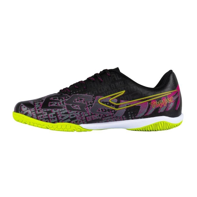 A nova Chuteira da Topper Futsal Resenha veio para você brilhar dentro das qudras. Confeccionada com material resistente, oferecendo amortecimento a cada passada. Palmilha macia com o tecido forrado. Compre Já a Chuteira Futsal Resenha da Topper e complete seu uniforme de jogo e marque esse golaço!