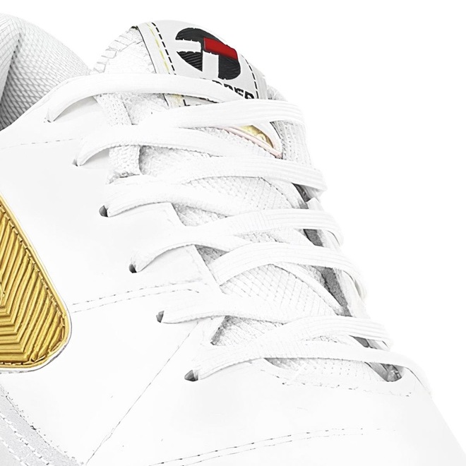 Apresentamos a Chuteira Topper Futsal Titanium X. Um calçado que une estilo moderno e desempenho excepcional para os jogadores de futsal que buscam dominar as quadras com confiança. Com um design vibrante e tecnologias avançadas, esta chuteira irá elevar sua performance e destacar seu jogo. A combinação de cores na chuteira oferece um visual marcante e cheio de energia, essas cores contrastantes refletem sua determinação e atitude nas quadras de futsal. Projetada para proporcionar excelente tração e agilidade nas partidas de futsal. Seu solado feito em borracha antiderrapante, desenvolvido para garantir aderência otimizada, permitindo que você realize movimentos precisos e rápidos. A sola não marca o solo, tornando-a ideal para jogos indoor. O cabedal é confeccionado em material sintético de alta qualidade, garantindo ajuste confortável e durabilidade, além de contar com forro interno têxtil com leve acolchoamento, garantindo extremo conforto a cada jogada. O fechamento por cadarço assegura um encaixe seguro e personalizado. Possui palmilha em EVA e removível, facilitando a higienização. Domine a bola e o jogo com a Chuteira Futsal Topper Titanium X.