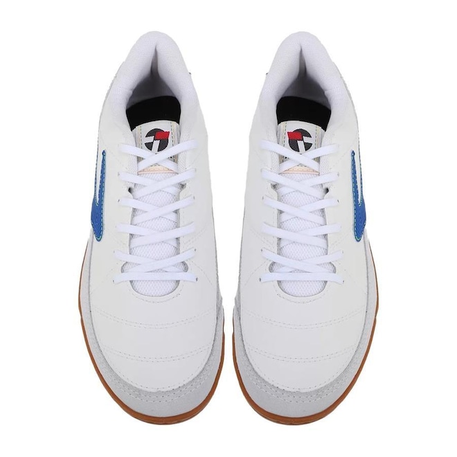 Apresentamos a Chuteira Topper Futsal Titanium X. Um calçado que une estilo moderno e desempenho excepcional para os jogadores de futsal que buscam dominar as quadras com confiança. Com um design vibrante e tecnologias avançadas, esta chuteira irá elevar sua performance e destacar seu jogo. A combinação de cores na chuteira oferece um visual marcante e cheio de energia, essas cores contrastantes refletem sua determinação e atitude nas quadras de futsal. Projetada para proporcionar excelente tração e agilidade nas partidas de futsal. Seu solado feito em borracha antiderrapante, desenvolvido para garantir aderência otimizada, permitindo que você realize movimentos precisos e rápidos. A sola não marca o solo, tornando-a ideal para jogos indoor. O cabedal é confeccionado em material sintético de alta qualidade, garantindo ajuste confortável e durabilidade, além de contar com forro interno têxtil com leve acolchoamento, garantindo extremo conforto a cada jogada. O fechamento por cadarço assegura um encaixe seguro e personalizado. Possui palmilha em EVA e removível, facilitando a higienização. Domine a bola e o jogo com a Chuteira Futsal Topper Titanium X.