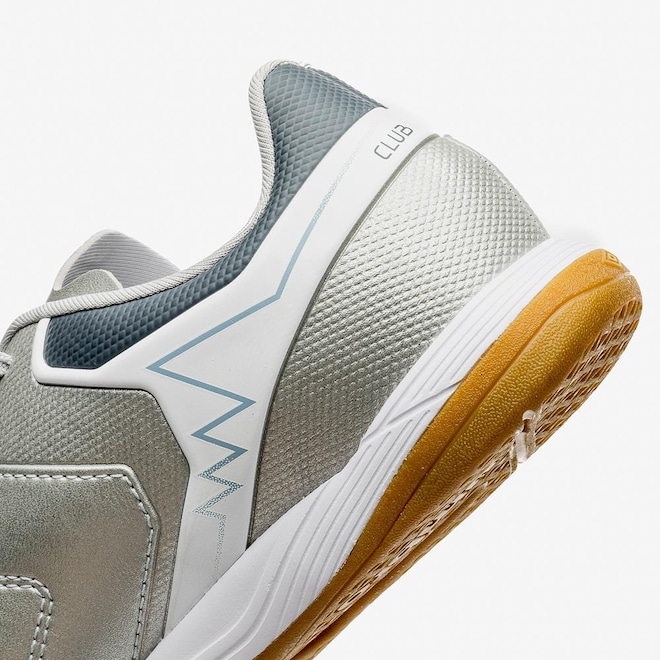 Com a combinação de cores prata, branco e grafite, a Chuteira Futsal Umbro Adamant Master Class Club destaca-se pelo design moderno e versátil, que se adapta a diferentes estilos e uniformes de jogo, proporcionando um visual único e elegante em quadra.