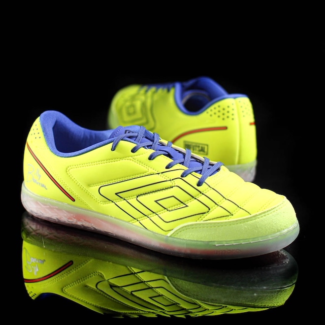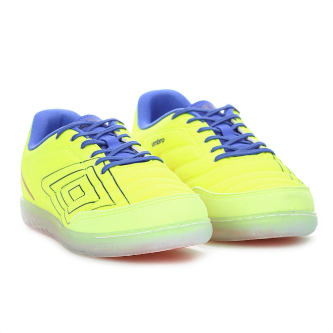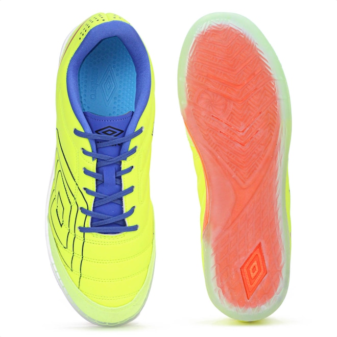 Precisão, aderência e conforto para dominar o futsal! Chuteira Umbro Futsal Br Futsal Billy Verde Limão Marinho e Laranja - Masculino Ficha Técnica: Marca: Umbro Gênero: Masculino Cor: Verde limão, marinho e laranja Cabedal: Sintético - Nobucado com biqueira de microfibra e costura reforçada Palmilha: EVA e poliéster - SOFT BLUE para maior conforto e absorção de impactos Solado: Borracha ID BOX antiderrapante com EVA para amortecimento Fechamento: Cadarço Lingueta: Fina e flexível Destaques: Parceria com o influenciador Billy do canal Br Futsal Indicado: Jogos de Futsal Diferencial: Billy Br Futsal estampado na lateral, QR Code que direciona para o Instagram oficial do BR Futsal e Diamante Umbro na lateral e na lingueta Cansado de chuteiras que não oferecem a precisão e estabilidade que o futsal exige? Nada pior do que escorregar em quadra ou sentir desconforto durante o jogo. A Umbro BR Futsal resolve esse problema com sua tecnologia ID BOX antiderrapante, que maximiza a aderência e proporciona movimentação ágil e segura. Porque investir: Seu cabedal nobucado oferece controle superior da bola, enquanto a palmilha SOFT BLUE absorve impactos para evitar dores após longas partidas. Se você busca performance e resistência, esta chuteira é a escolha ideal. Conteúdo da embalagem: 1 par de Chuteira Umbro Futsal Br Futsal Billy Verde Limão Marinho e Laranja - Masculino