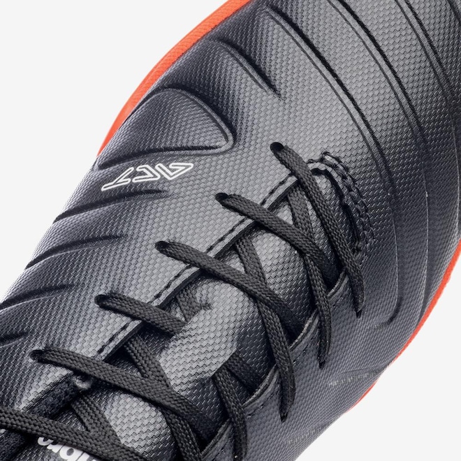 Além disso, a palmilha em EVA forrada em tecido oferece amortecimento extra, e o solado antiderrapante em borracha garante segurança e tração nas jogadas.
