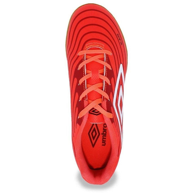 A Chuteira Futsal Umbro Glaze segue um visual minimalista com cores foscas e linhas fluidas brilhantes que trazem elegância e modernidade para o modelo. As texturas no cabedal auxiliam o controle direcional de bola nos momentos dos passes e dribles dentro das quadras. Cabedal confeccionado em material fosco laminado e texturizado. Possui forro em tecido com acabamento luvado, aplicação de grafismo linear em ton sur ton com efeito glow, Diamante Umbro em destaque na lateral, assinatura Glaze aplicada na parte frontal e palmilha macia em EVA com tecido forrado. O solado de futebol indoor é construído em borracha resistente com função antiderrapante.ref: M13DIZ