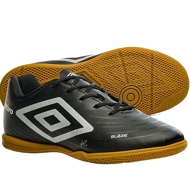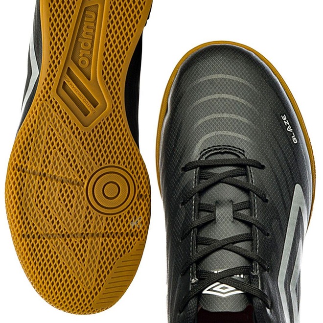 A Chuteira Futsal Umbro Glaze segue um visual minimalista com cores foscas e linhas fluidas brilhantes que trazem elegância e modernidade para o modelo. As texturas no cabedal auxiliam o controle direcional de bola nos momentos dos passes e dribles dentro das quadras. Cabedal confeccionado em material fosco laminado e texturizado. Possui forro em tecido com acabamento luvado, aplicação de grafismo linear em ton sur ton com efeito glow, Diamante Umbro em destaque na lateral, assinatura Glaze aplicada na parte frontal e palmilha macia em EVA com tecido forrado. O solado de futebol indoor é construído em borracha resistente com função antiderrapante.ref: M13DIZ