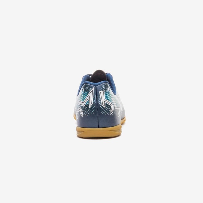 A Chuteira Futsal Umbro Heatmap apresenta um visual contemporâneo, com um grafismo reticulado que chama a atenção. O Diamante Umbro centralizado e as letras "HM" em destaque na parte traseira adicionam um toque de exclusividade, tornando-a ideal para quem deseja se destacar em quadra.