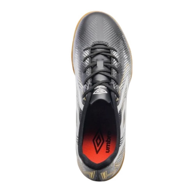 Indicada para jogadores iniciantes, a Chuteira Futsal Umbro Heatmap apresenta um design diferenciado e contemporâneo que simula um grafismo de mapa de calor. O cabedal, confeccionado em material laminado, possui aplicação de grafismo reticulado, com o Diamante Umbro centralizado e as letras "HM" em destaque na parte de trás da chuteira. A palmilha interna, macia em EVA e forrada em tecido, oferece conforto durante o jogo. O solado de futebol indoor é feito em borracha monocolor antiderrapante, com tecnologia HYPERGRIP.