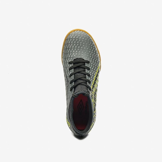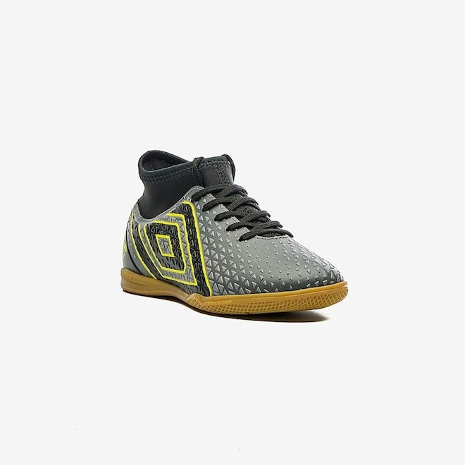- Sobre o produto - Chuteira Futsal Umbro Mutant Jr - InfantilCom um design ousado e irreverente, a Chuteira Futsal Umbro Mutant Jr exibe arte gráfica personalizada com jogo de cores contrastantes e tom sobre tom. Indicado para os jogadores infantis e juvenis iniciantes, o modelo oferece calce em meia de tecido com elastano para um ajuste confortável. Cabedal assimétrico slip-on confeccionado em meia de tecido com elastano na base e material laminado com alta frequência. Possui fechamento em cadarço para um melhor ajuste no pé, maxi Diamante Umbro Outline na lateral com assinatura do modelo e palmilha interna em EVA forrado. O solado de futsal é construído em borracha, garantindo aderência ao solo e durabilidade.- ref: M13H7A