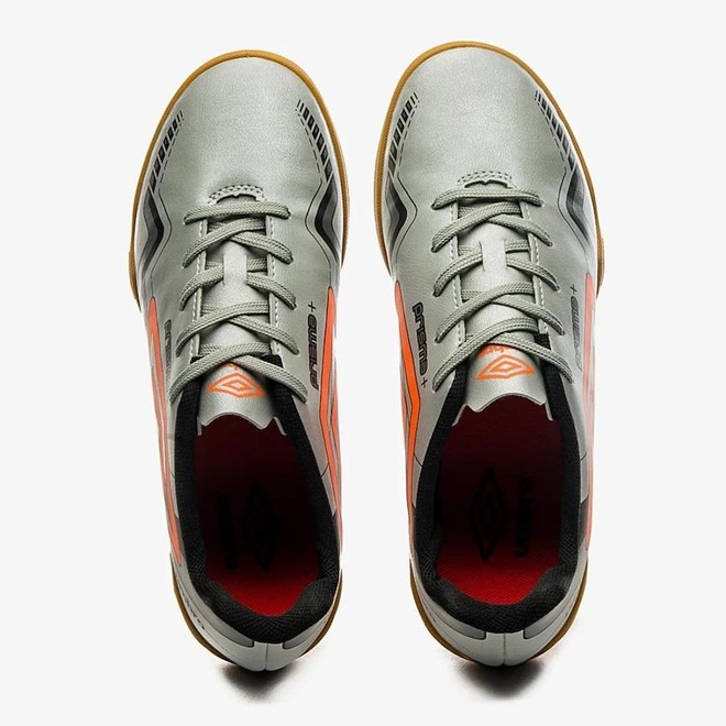 O cabedal (parte superior do calçado) é construído em material sintético de fácil manutenção com textura suave e acabamento laminado. Possui arte gráfica com cores contrastantes em serigrafia, Diamante Umbro na lateral, forro interno em poliéster e palmilha macia em EVA com tecido forrado. O solado de futsal é em blenda de TPU com PVC para maior durabilidade e firmeza.