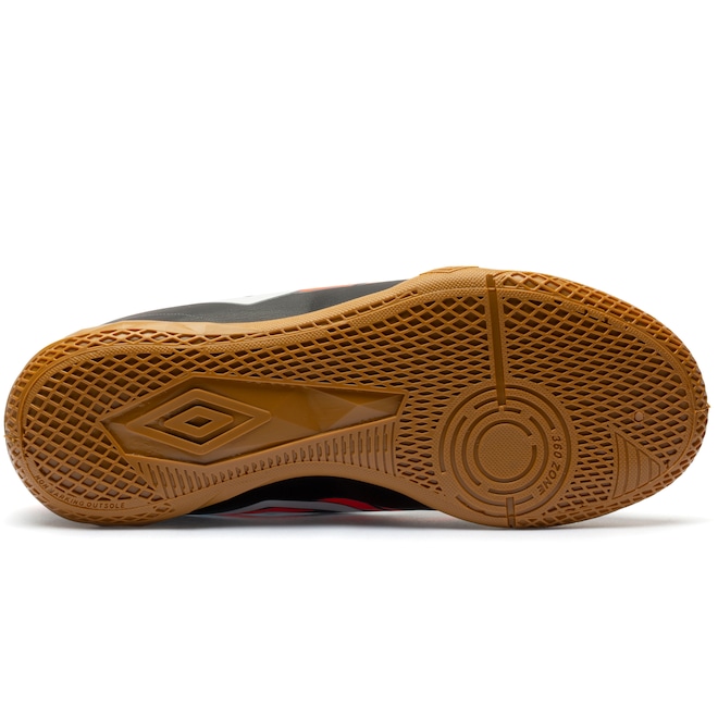 360° Zone: Ponto de giro que permite a rápida mudança de direção.Já seu cabedal é sintético, o ajuste é em cadarço e sua palmilha é injetada.