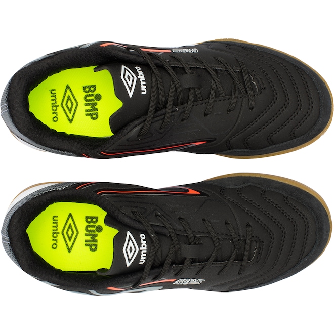 A palmilha é removível e o forro com reforço acolchoado. Compre já sua chuteira de futsal Umbro!