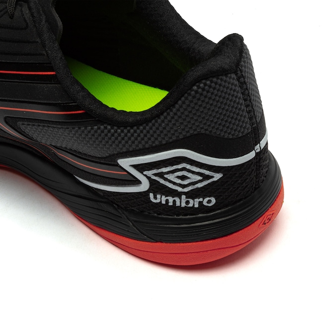 A palmilha é removível e o forro com reforço acolchoado. Compre já sua chuteira de futsal Umbro!